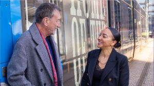 Crowds gathered in Birmingham’s Centenary Square today (Monday, March 2) as Steven revealed his name on the newly-branded tram, recognising his commitment to championing Birmingham and the West Midlands on screen and his support for the region’s film industry.