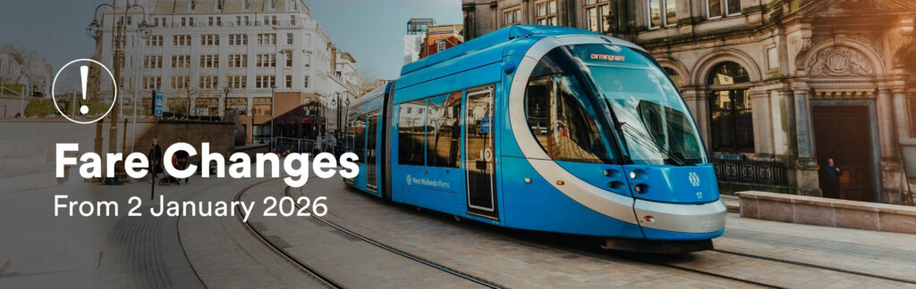 Following a comprehensive fares review, the cost of all fares on the West Midlands Metro network will increase from January 2, 2026.